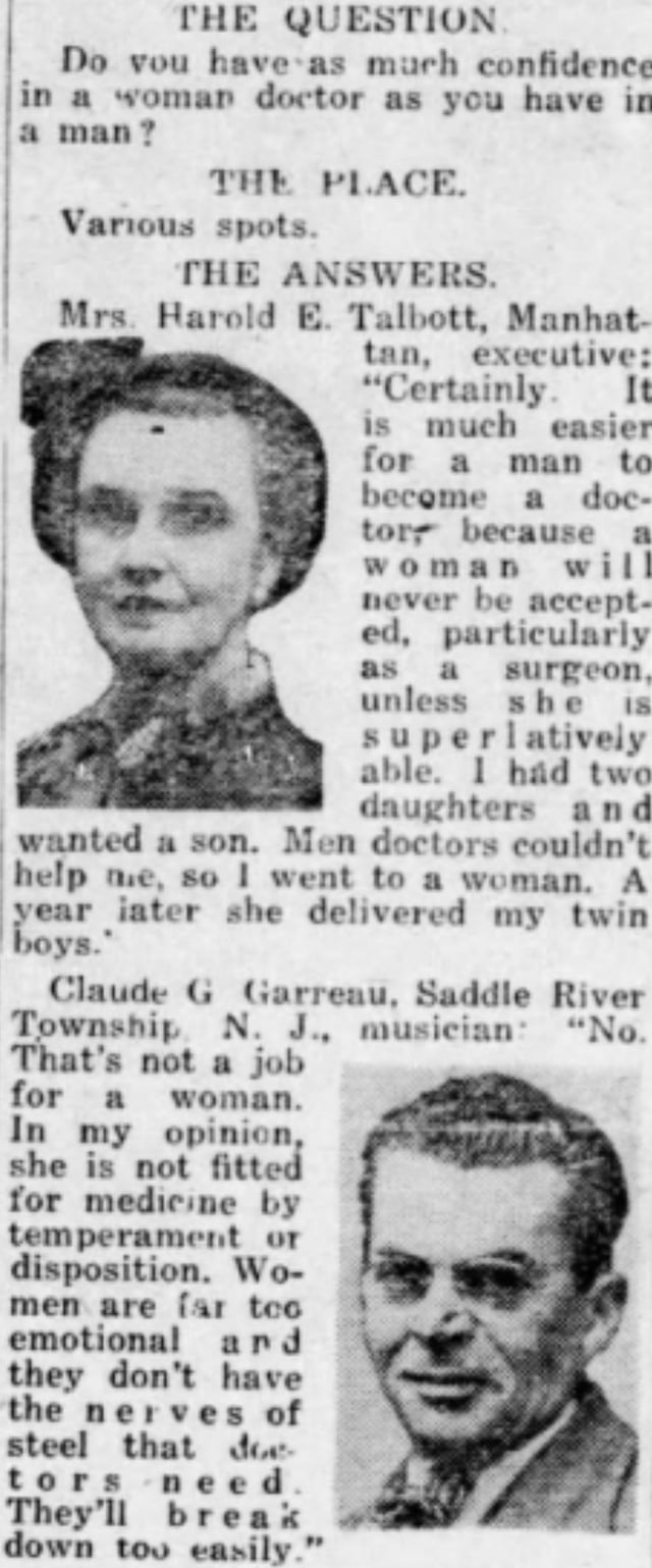Oh Claude with the “women are far too emotional”. Hope if he had a daughter she was a spitfire with nerves of steel who changed his mind.