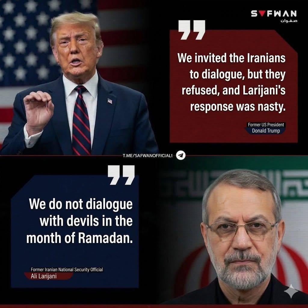 1. thats not even larijani’s pic but yeah every time Iran has done negotiations with the US, Israel attacks and kills their negotiators, Iran isn’t the Problem, the US is for allowing Israel to get away with it everytime..
