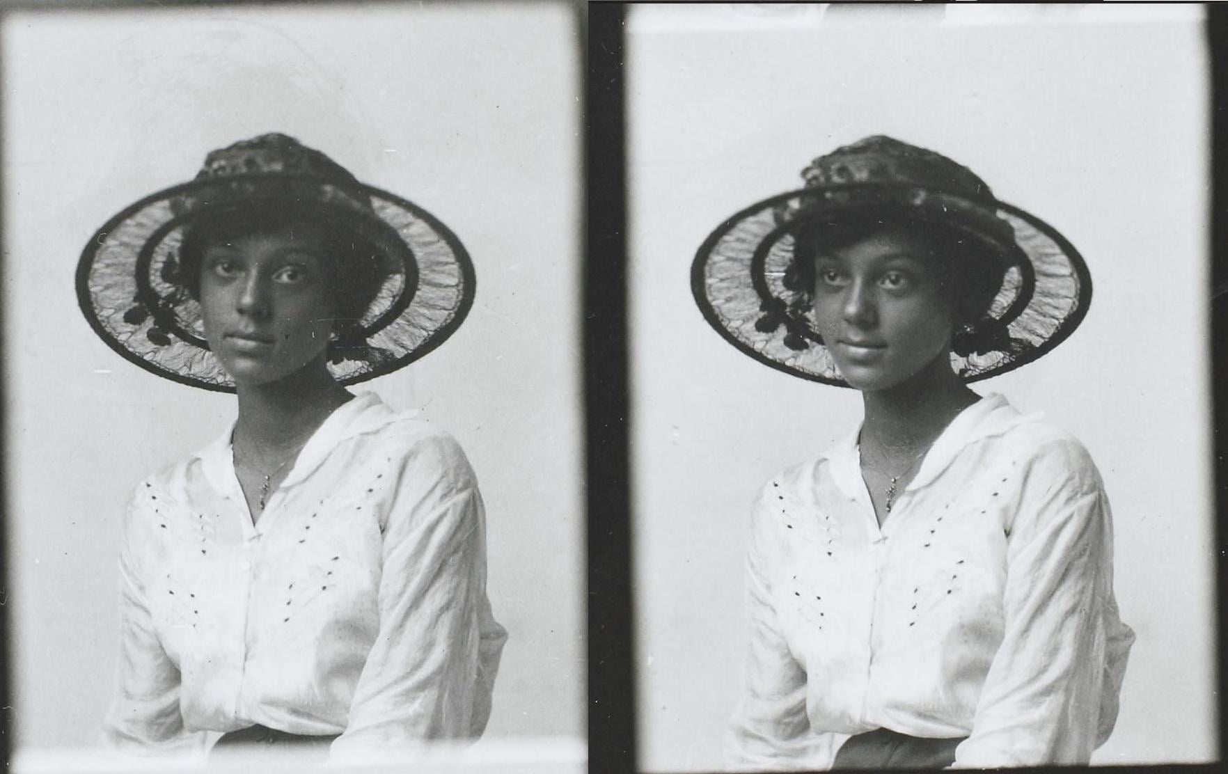 Young lady posing for her double shot, Junction city, Kansas, 1917. glass negative by Electrical-Aspect-13
