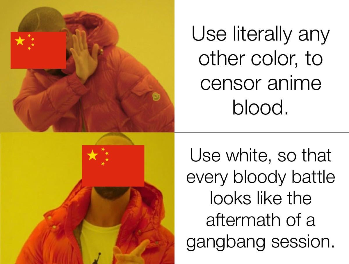 This is a video game, not an anime, but look at Mortal Kombat. Every game has 4 or 5 characters, with different colored blood, and they don’t use white, for any of them.
