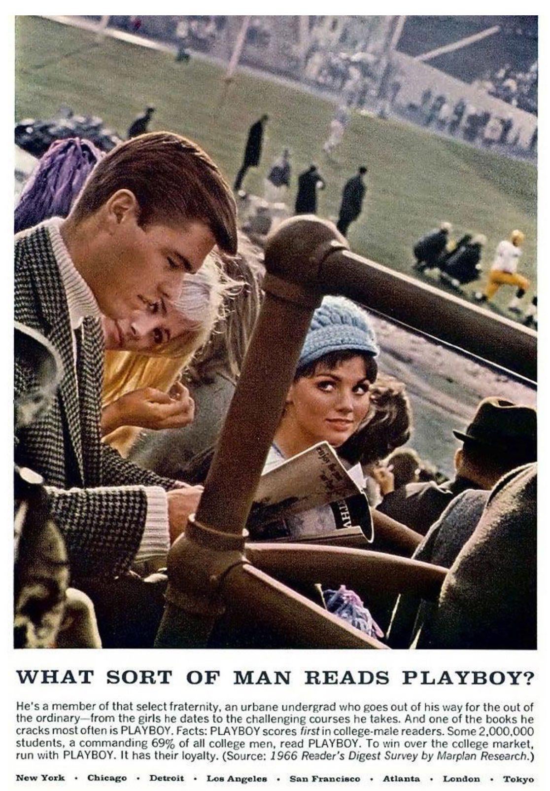 Men who care more about Gore Vidal take on Nixon than interacting with beautiful women a sporting event. Playboy was the original smartphone.