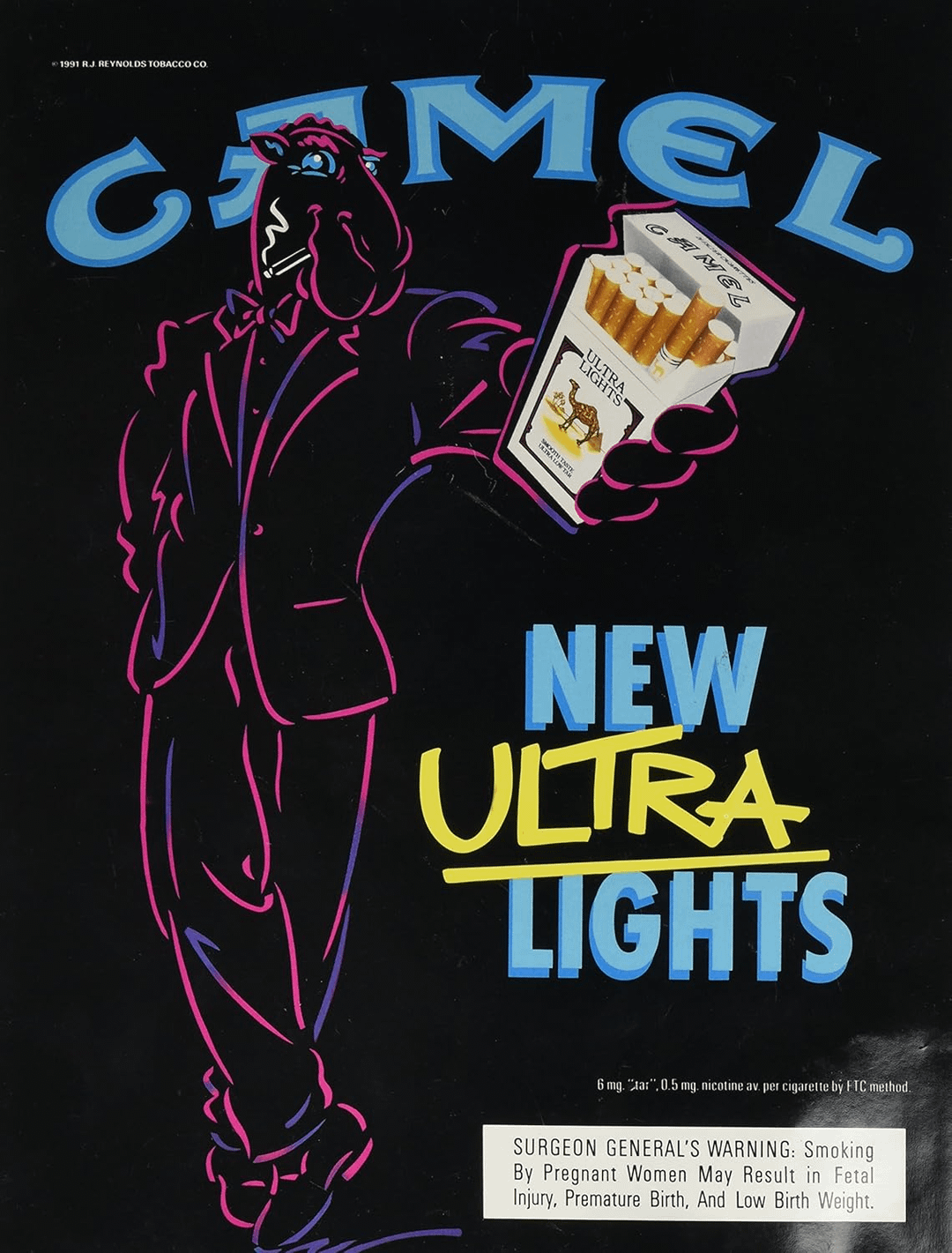 I'm looking to have a customer Hot Wheels card & blister made; I'm combining my favourite Corvette body style with my Playboy 'horoscope' magazine (the February 1991 release). A quality scan of the front cover art wasn't difficult to source (Pamela Anderson in a Valentine's special was understandably popular), but ol' Joe Camel and his new Ultra Lights doesn't seem to have been as effectively immortalized in high-quality, digital form.