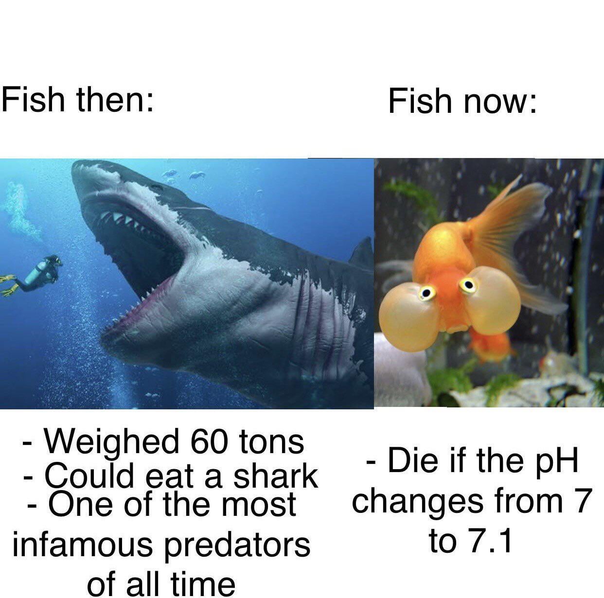 5. Any fish born after 2.6 million years ago cant cook, all they know is aquariums, eat manufactured food, and 7.0 ph water.