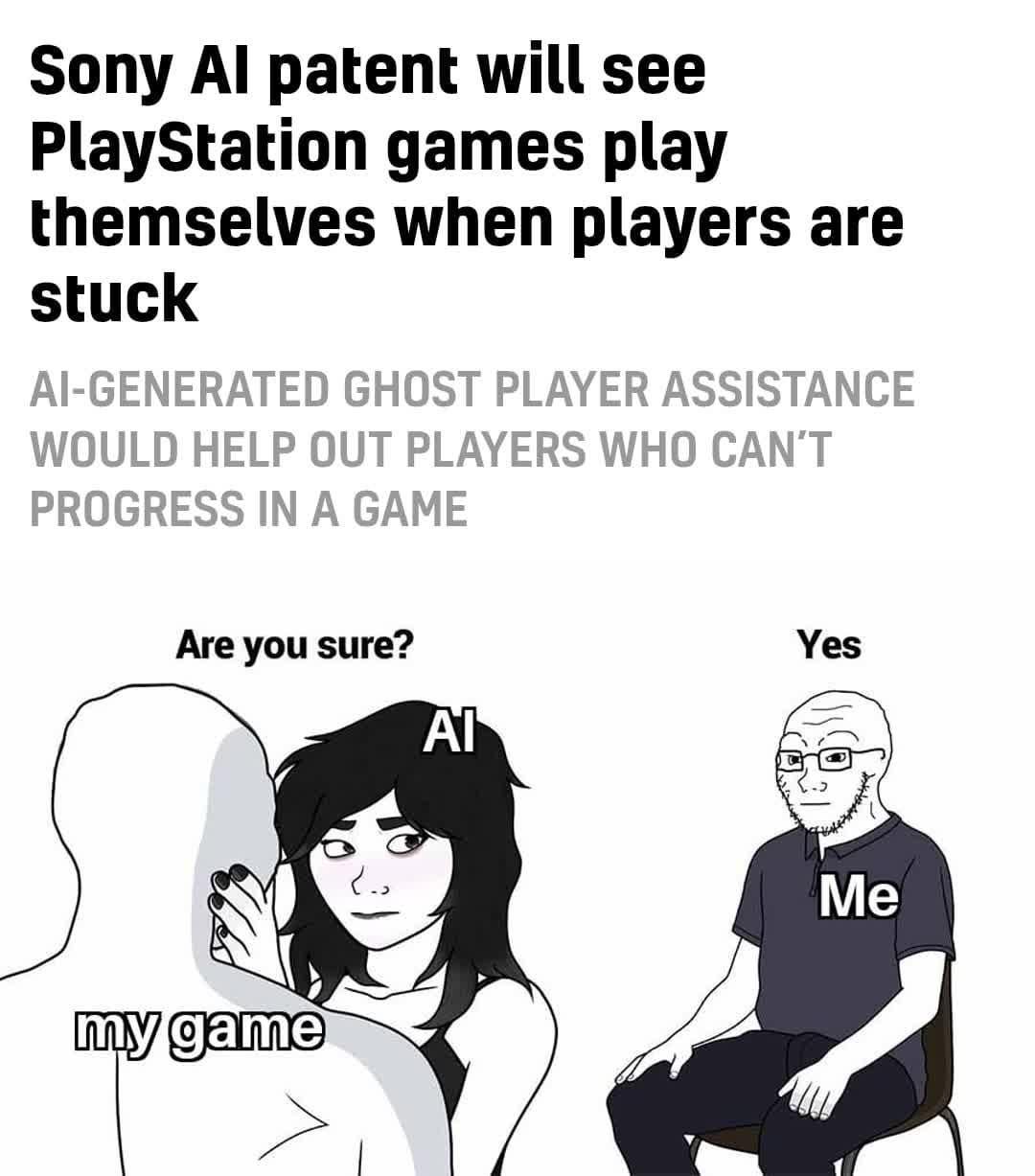 Ah yes because the first thing I want to hear when i cant beat a level is someone asking “oww can’t you do it? Maybe the AI can take over and help your sorry ass 🥺”
