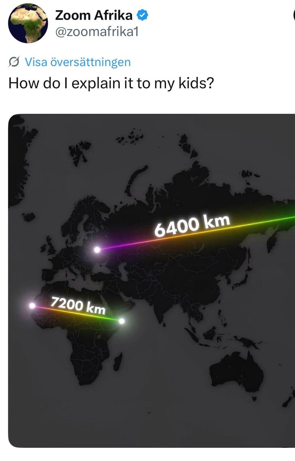 2. In case anyone is missing the facepalm here, the 6400 km line is incorrect. That distance is actually closer to 8900 km.