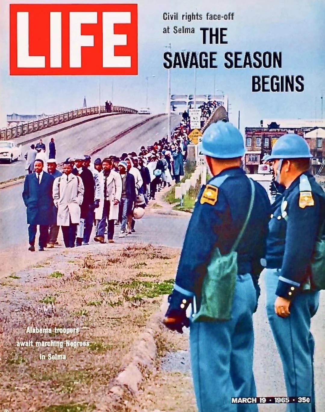 A 1965 Life Magazine cover depicting the impending violence that the voting rights marchers are about to face in Selma, Alabama. [1080 x 1369]