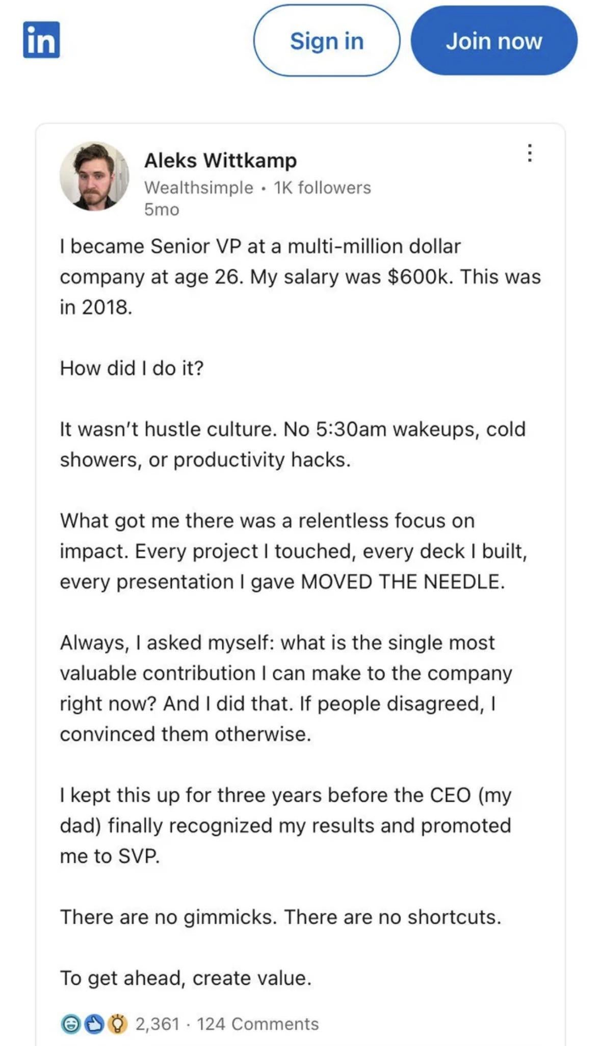 This idiot has 1K followers. Let that sink in. Wrote a dissertation about how his hard work got him where he is. Then followed it up with my dad promoted me. He wasn’t even smart enough to omit that.
