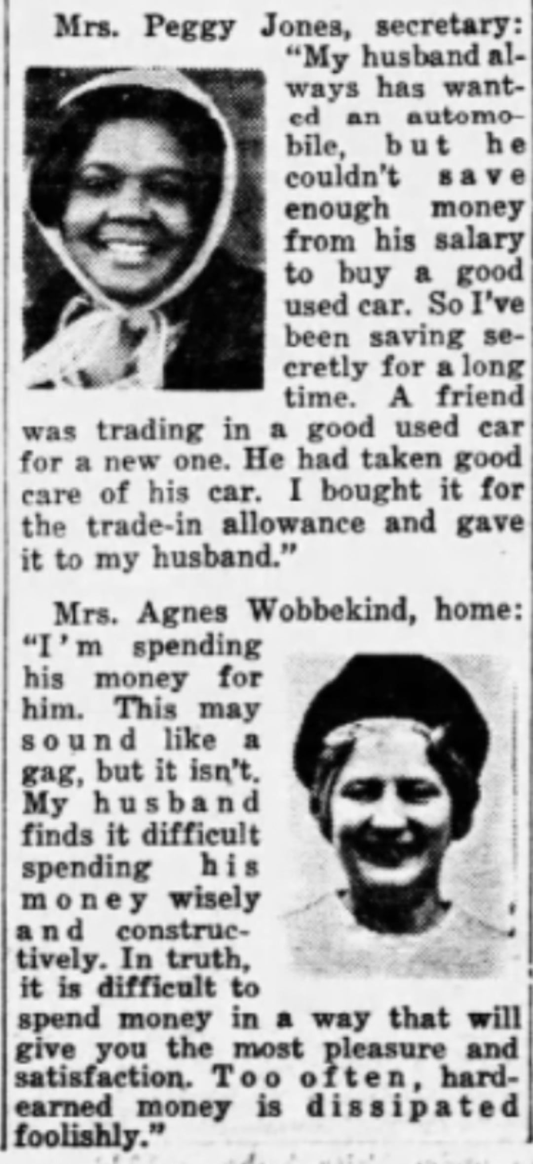 Mrs Felice seems to have had a husband who appreciated her. I amazed that Peggy Jones was able to save up for a car too.