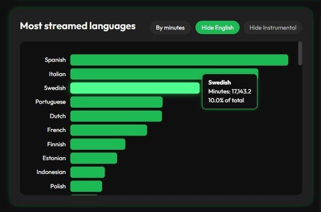 Bar chart showing streams and minutes by language.