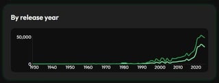 Line chart showing streams and minutes by release year.
