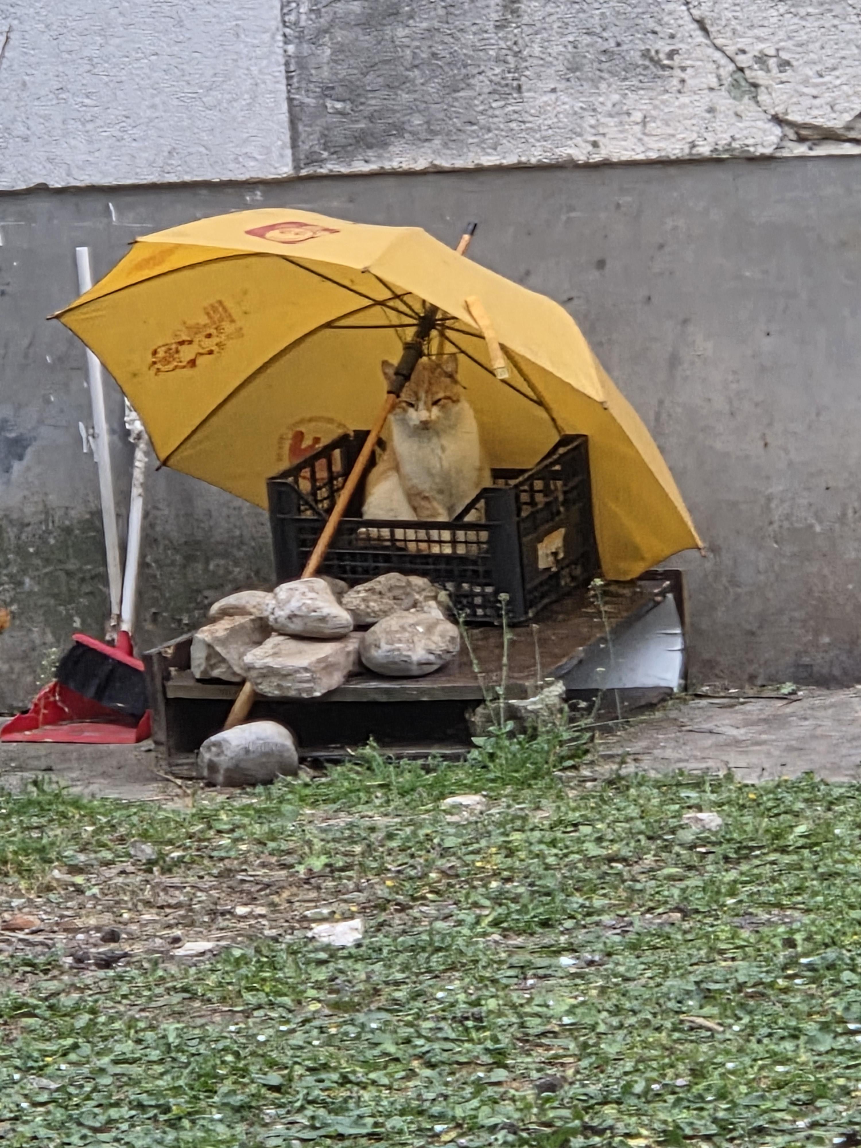 he looks like a little shopkeeper waiting for his first customer of the day ðŸ˜