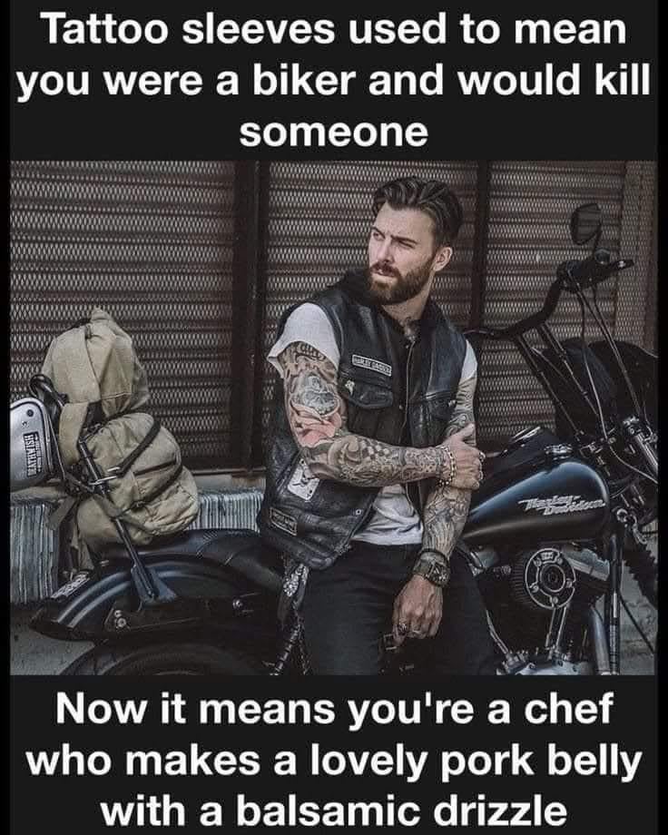 From intimidating biker to artisan chef, tattoos really got the biggest rebrand of all time honestly