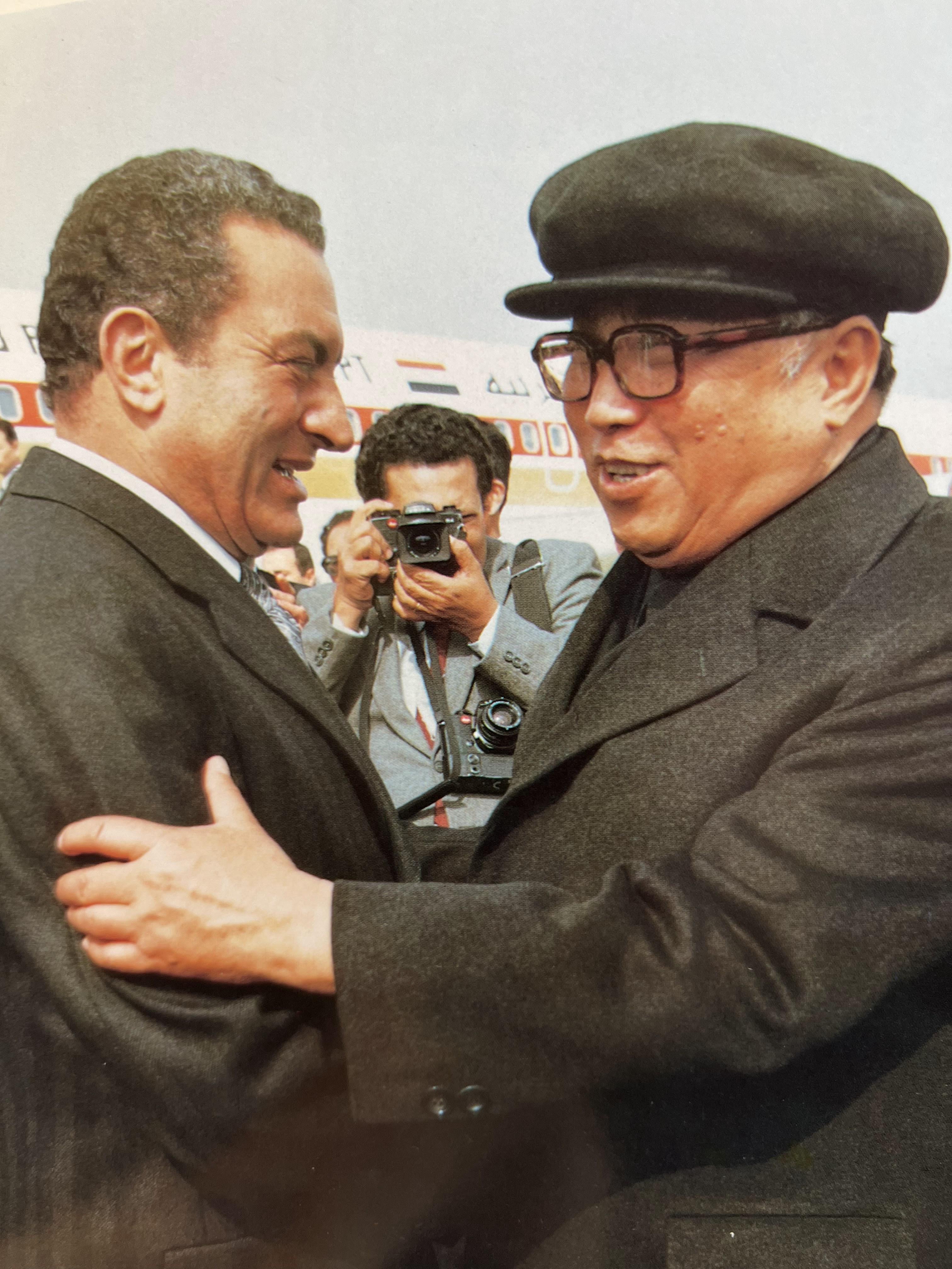 They seemed to have been good friends, they both gifted eachother many things and even medals from eachother’s countries. I imagine hosni respected il sung a lot because he sent help to the Egyptian airforce which hosni was a part of (if you’d like to see more photos involving North korea and Egypts relationship I’d be glad to share!)
