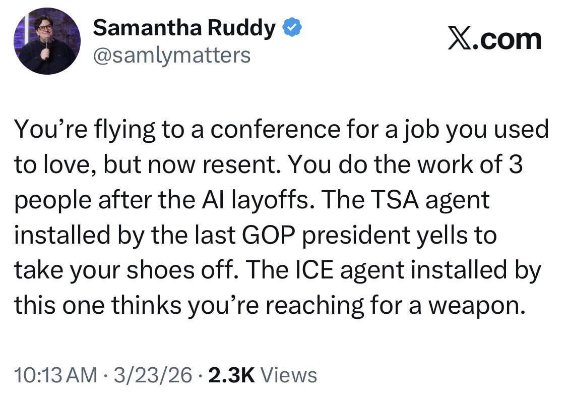 It seems they are intentionally making it harder to travel. It’s fishy that they refuse to fund DHS, making it more difficult to fly, and now with ICE at the airport people will fly less over fear of harassment/detainment. Gas prices are soaring, and I don’t believe we will see Carter administration prices/shortages, it will definitely increase with the normal summer increase. That will have people making choices to not take road trips or stay closer to home.