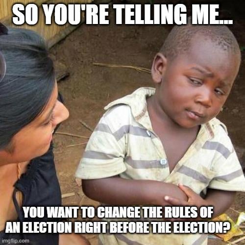 Hmmm Many states right before an election and during the election implemented automatic voter registration, removed excuse requirements for absentee ballots, and expanded early voting. Suddenly it was ok to harvest ballots and drop ballots off at drop boxes in parking lots that were unattended. When people complained they were evil for stopping democracy. Sound familiar?