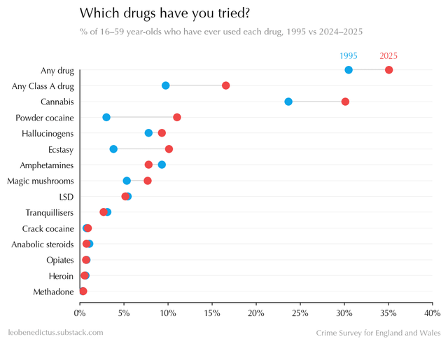 Does this take into account that cannabis and mushrooms had their classes changed during this period, I’m mainly thinking mushrooms whihc went from class C to A.