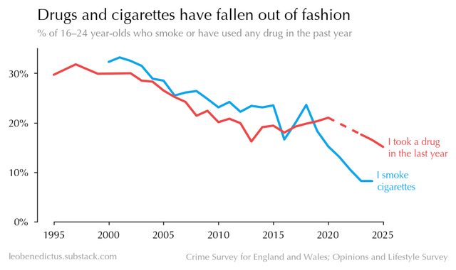I wonder if the second picture speaks to the younger generation being more open about drugs than the previous, rather than actually doing more drugs