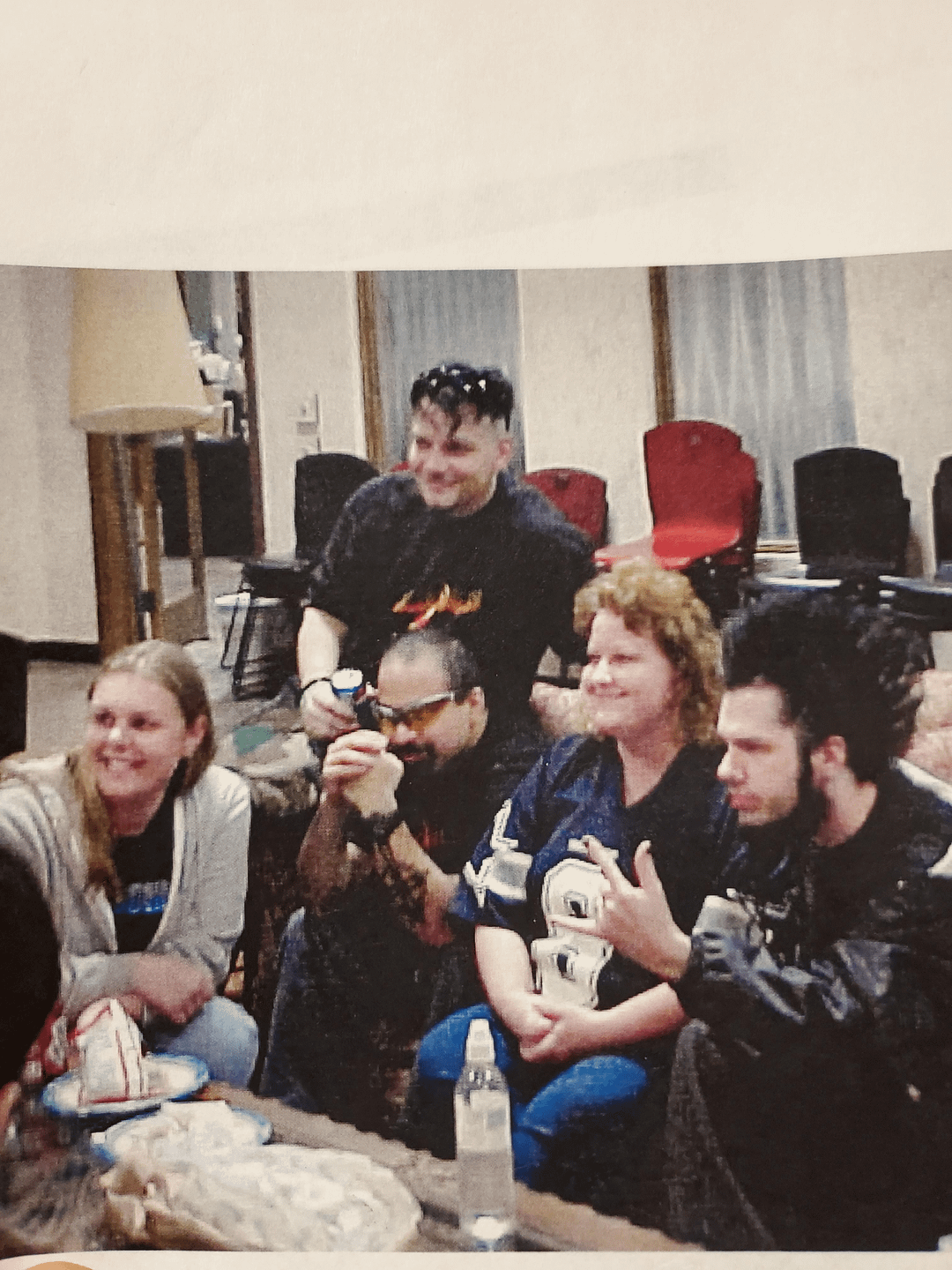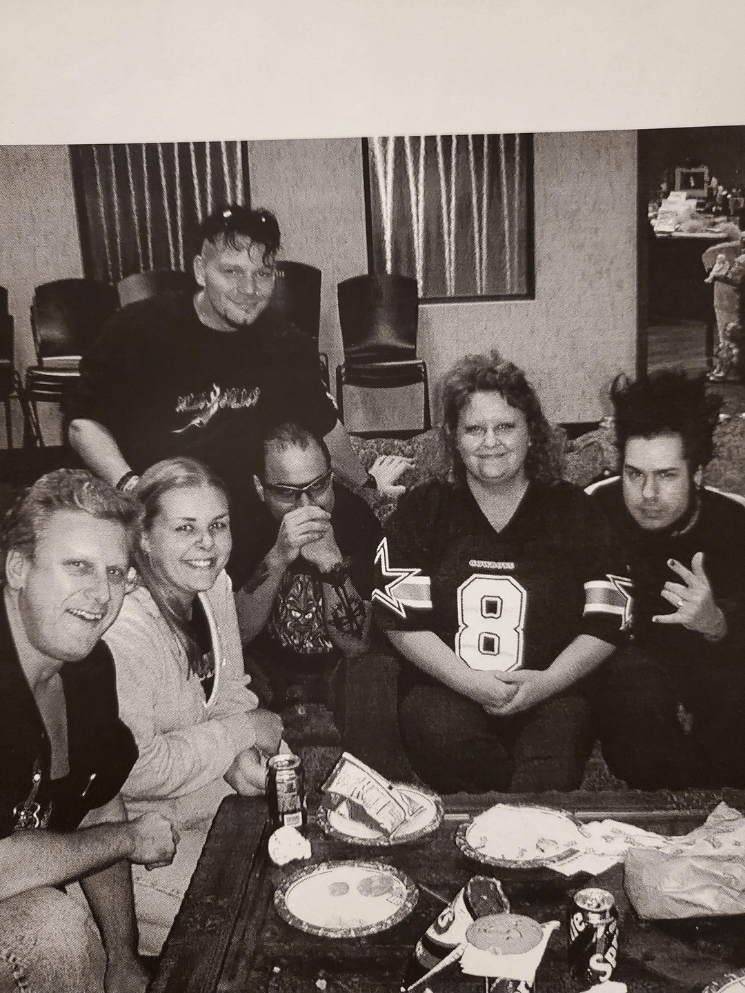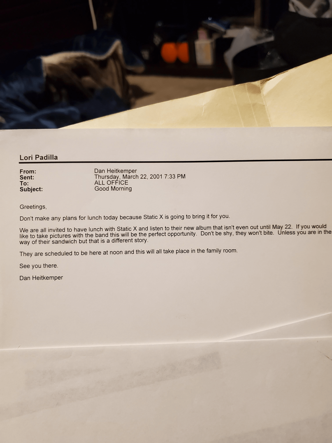 This picture took place on (almost) exactly this day 25 years ago. Static-X had lunch with the staff of the Hot Topic Headquarters.