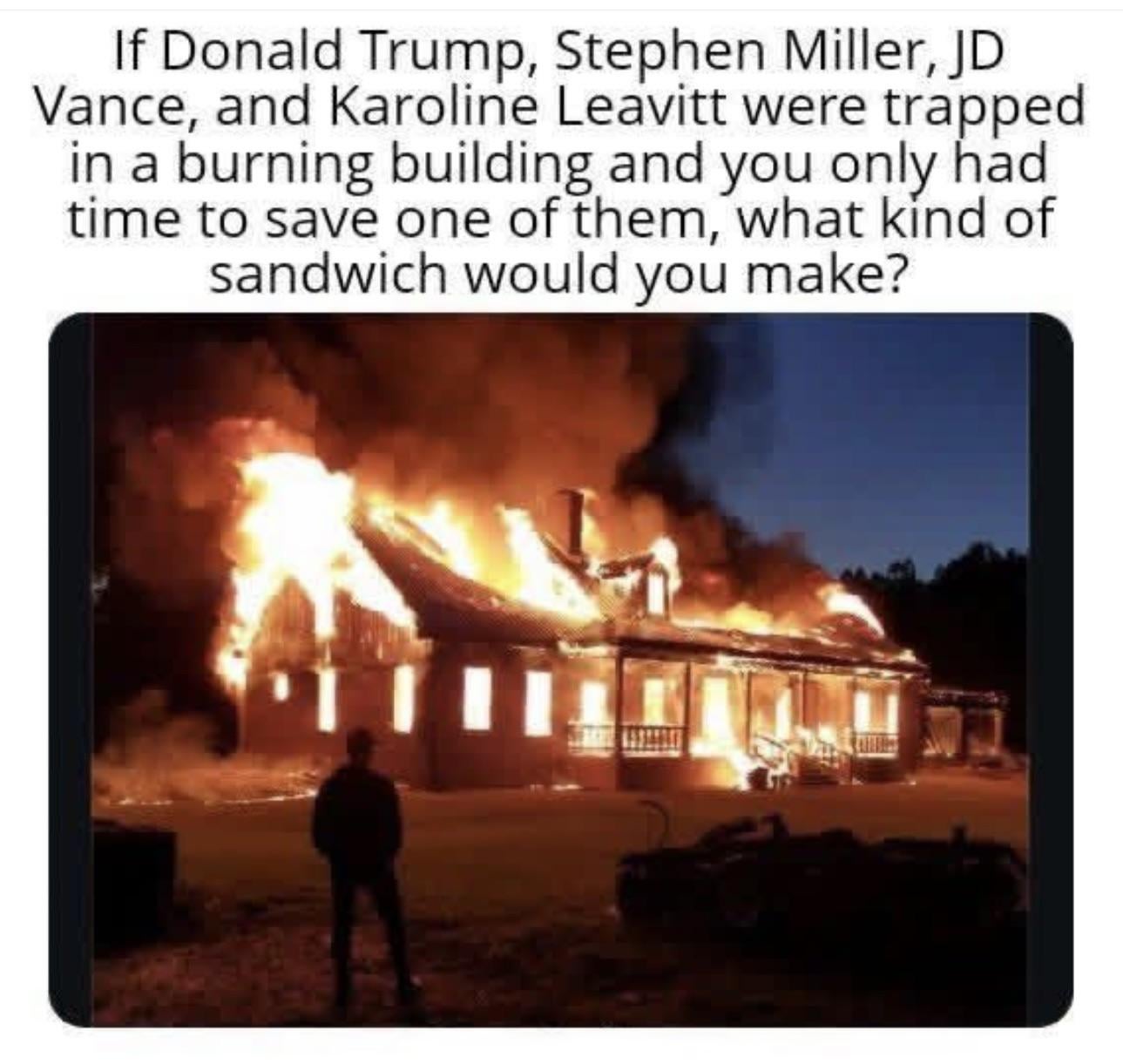I’d like to go into the burning building, then tell them all that I only have time to save one of them, and watch how fast they try to murder each other.