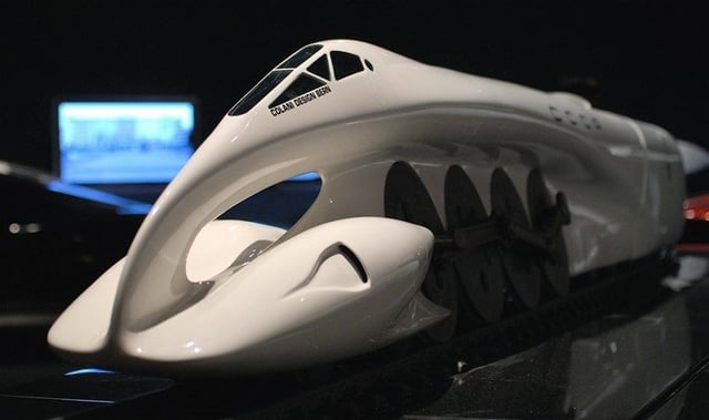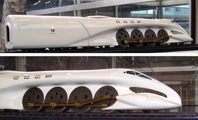 Train Concept . Luigi Colani 1979 . ” Biodynamic ” design . Specifically for the Baikal-Amur Mainline (BAM) in Siberia . Idea was to use coal-dust & water-vapour – a response to concerns about oil prices .