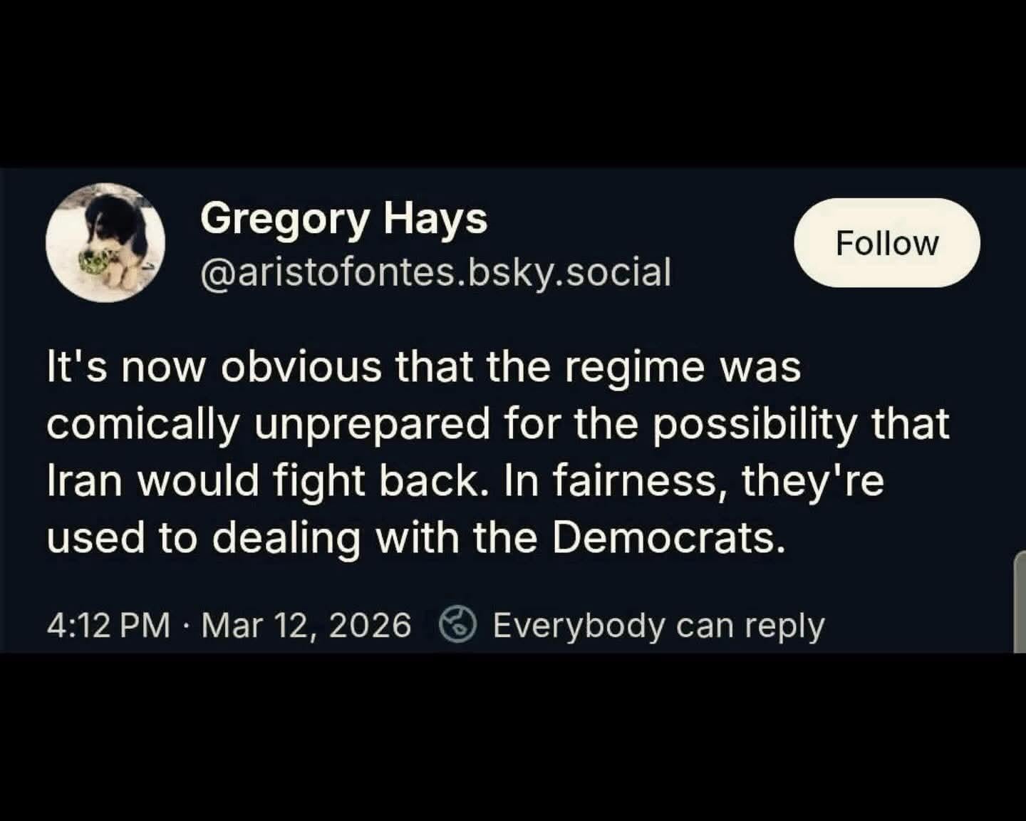 The Iranian government is also, you know, actually in charge of a government and has been for close to 50 years.