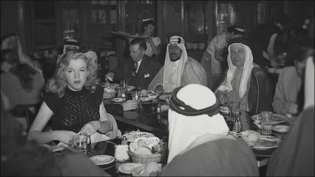 On January 30, 1947, a young, unknown Marilyn Monroe was present at the 20th Century Fox commissary (“Café de Paris”) in Los Angeles during a visit by King Saud of Saudi Arabia. She was seated just a table away while the King visited the studio lot and met with executives and film stars.