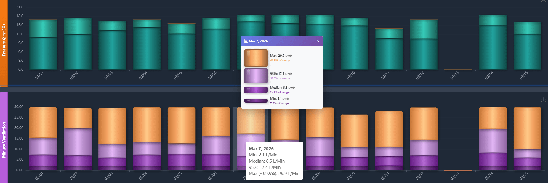 – Aggregate nightly breathing into distributions (min, median, 95th, ~max)