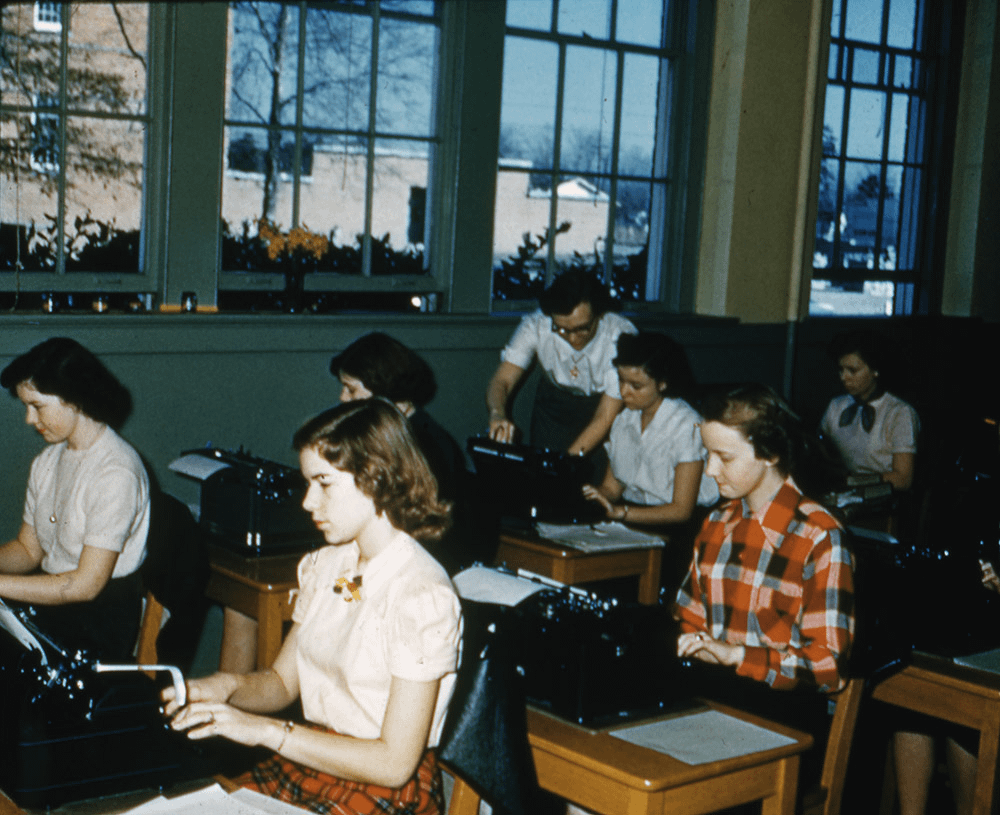 Typing class at Duplin County Schools, Raleigh, North Carolina, 1950s.