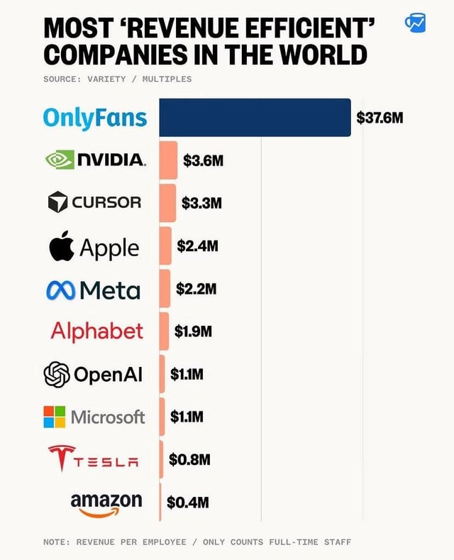 OnlyFans is the most revenue efficient company in the world.