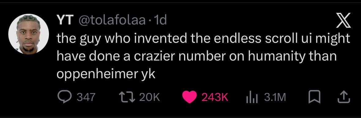 If anything, the infinite scroll is just natural selection.