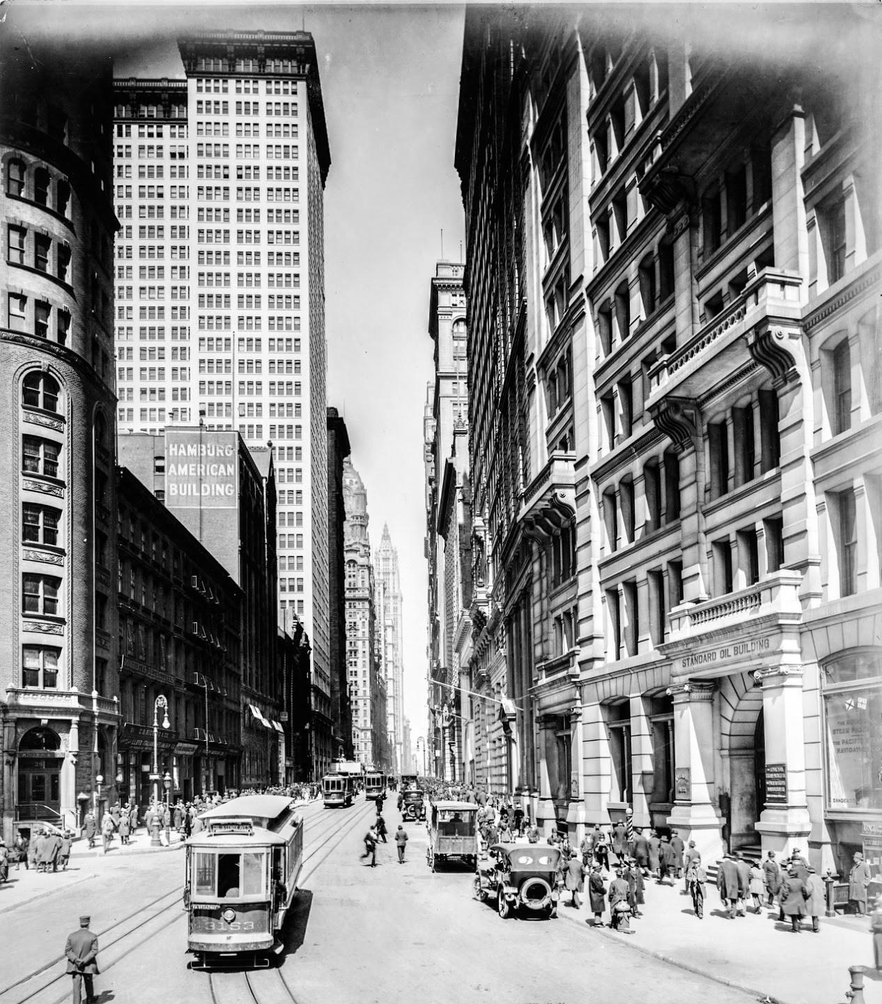 1916 NYC, Looking up Broadway from Bowling Green.