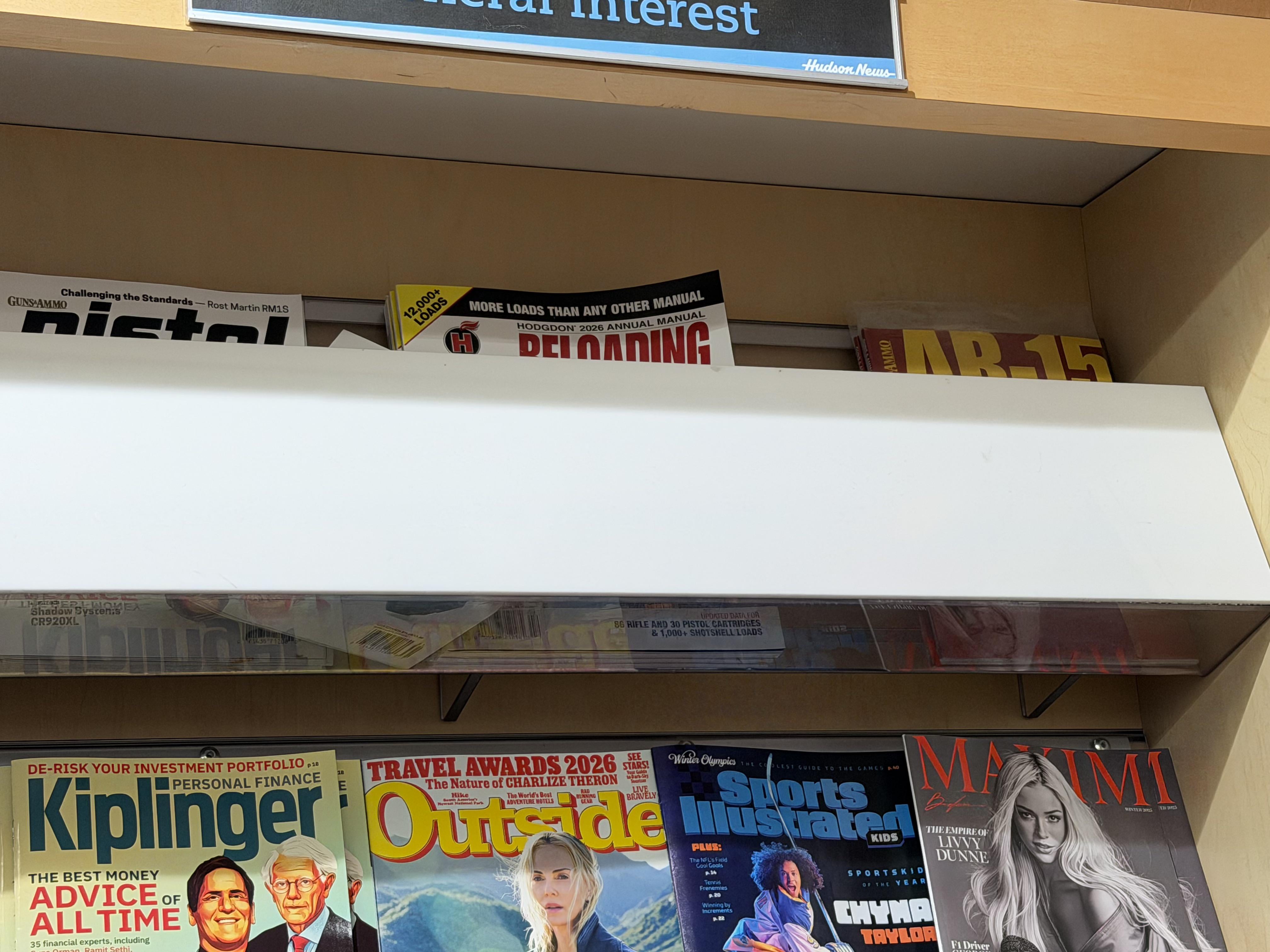 The gun magazines at this airport are hidden like porno mags