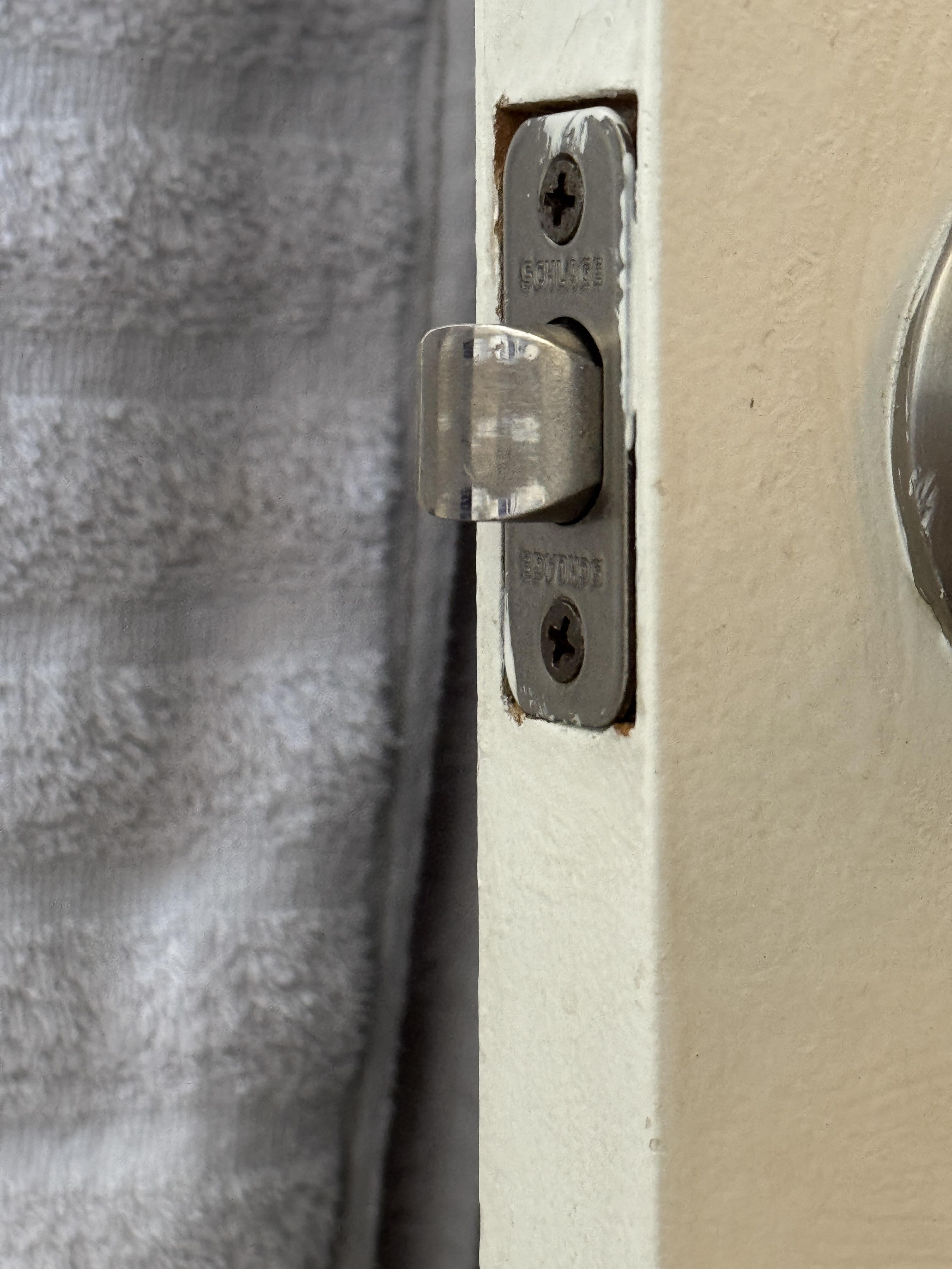 The scuff marks, the way the towel hangs, and how everything lines up makes the latch on my bathroom door look translucent by eineken83