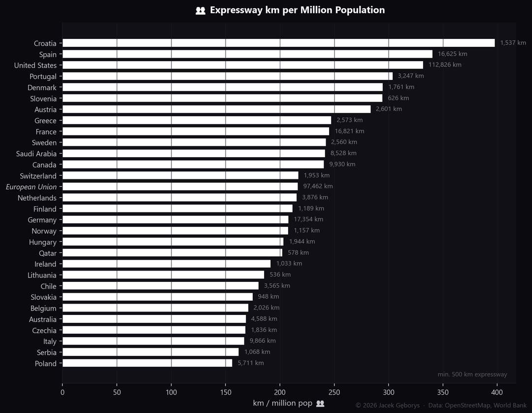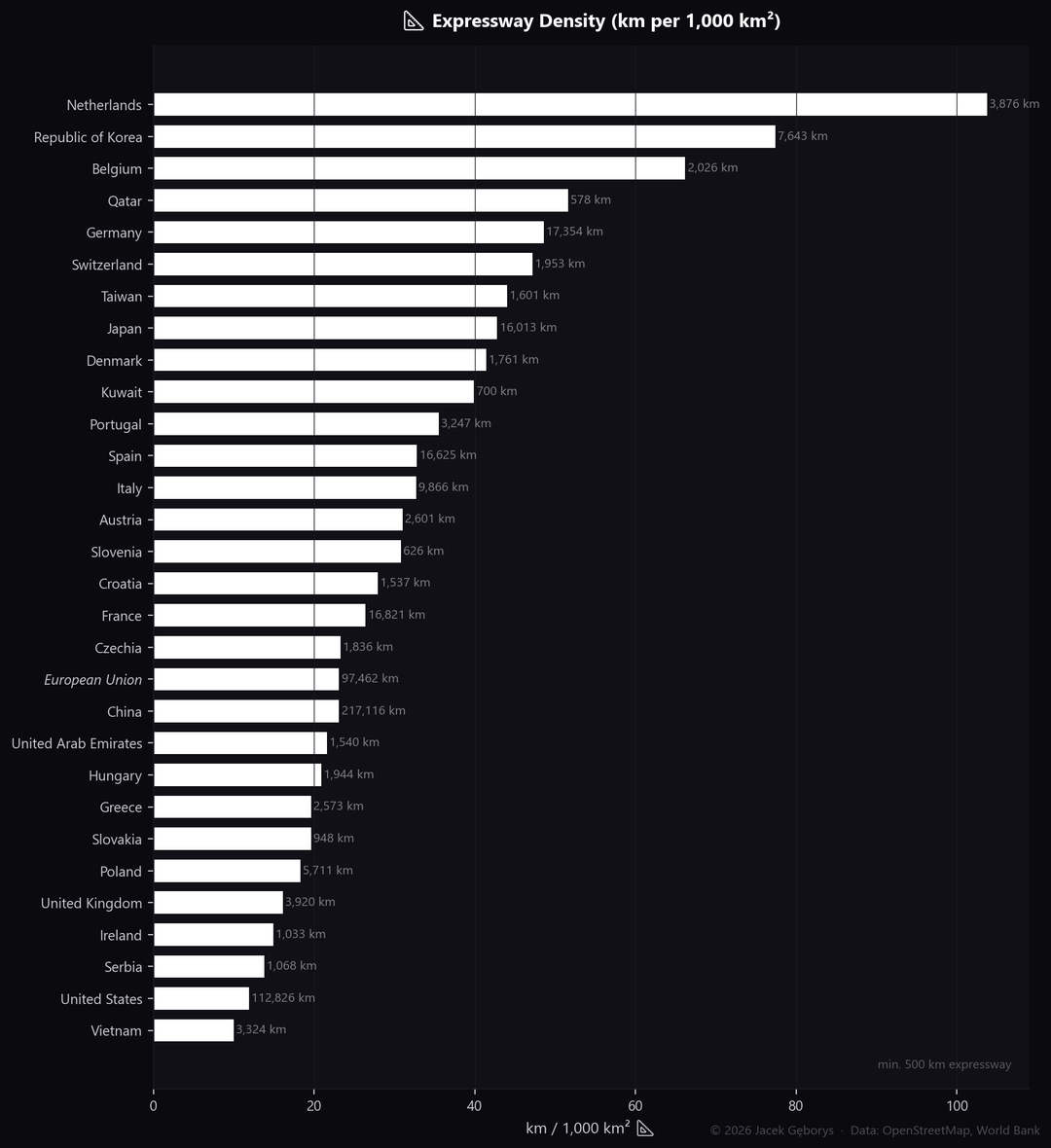 World motorway stats