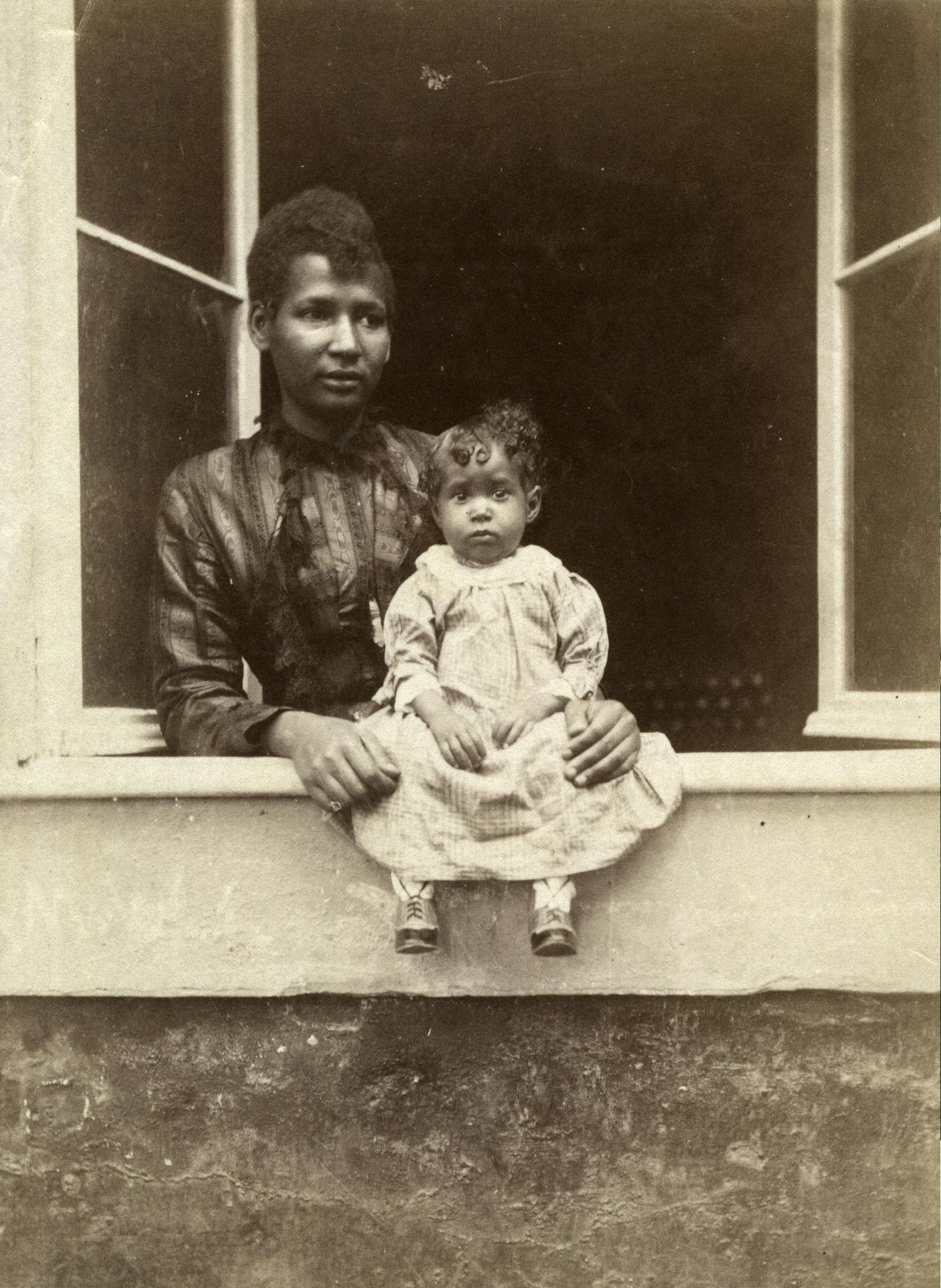 Mother posing her little girl on the window of their home, the little one hair mirrors her mother, Circa 1880-90s by Electrical-Aspect-13