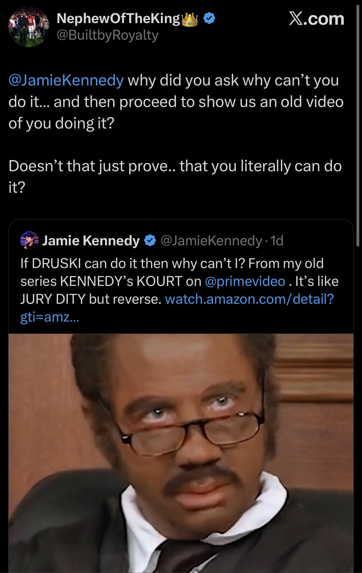 He must mean if Druski can go viral, then why can’t he. And the answer is BECAUSE YOU’RE NOT FUNNY.