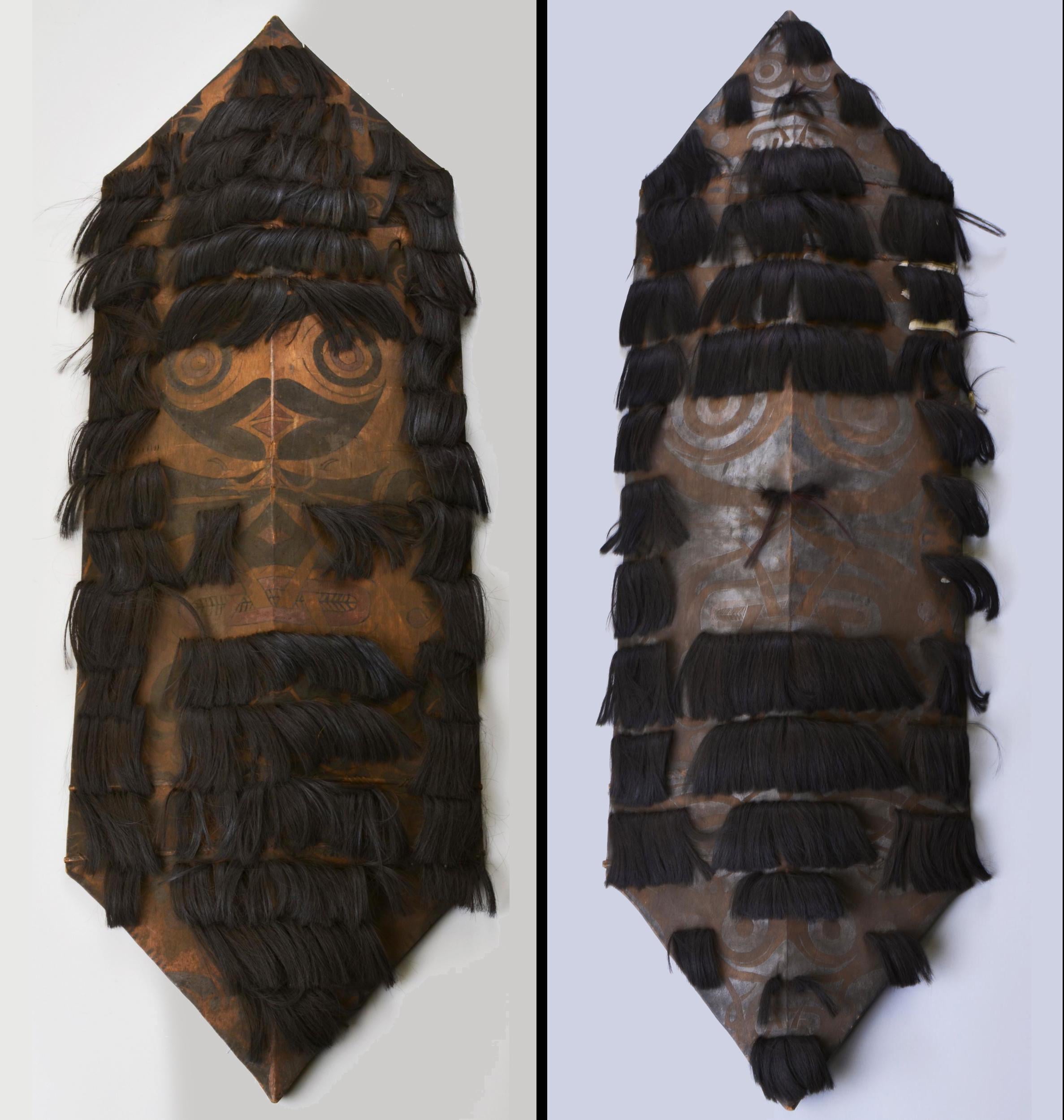 Shields decorated with human hair. Sarawak, Indonesia, Kenyah peoples, 19th century [2375×2500] by MunakataSennin
