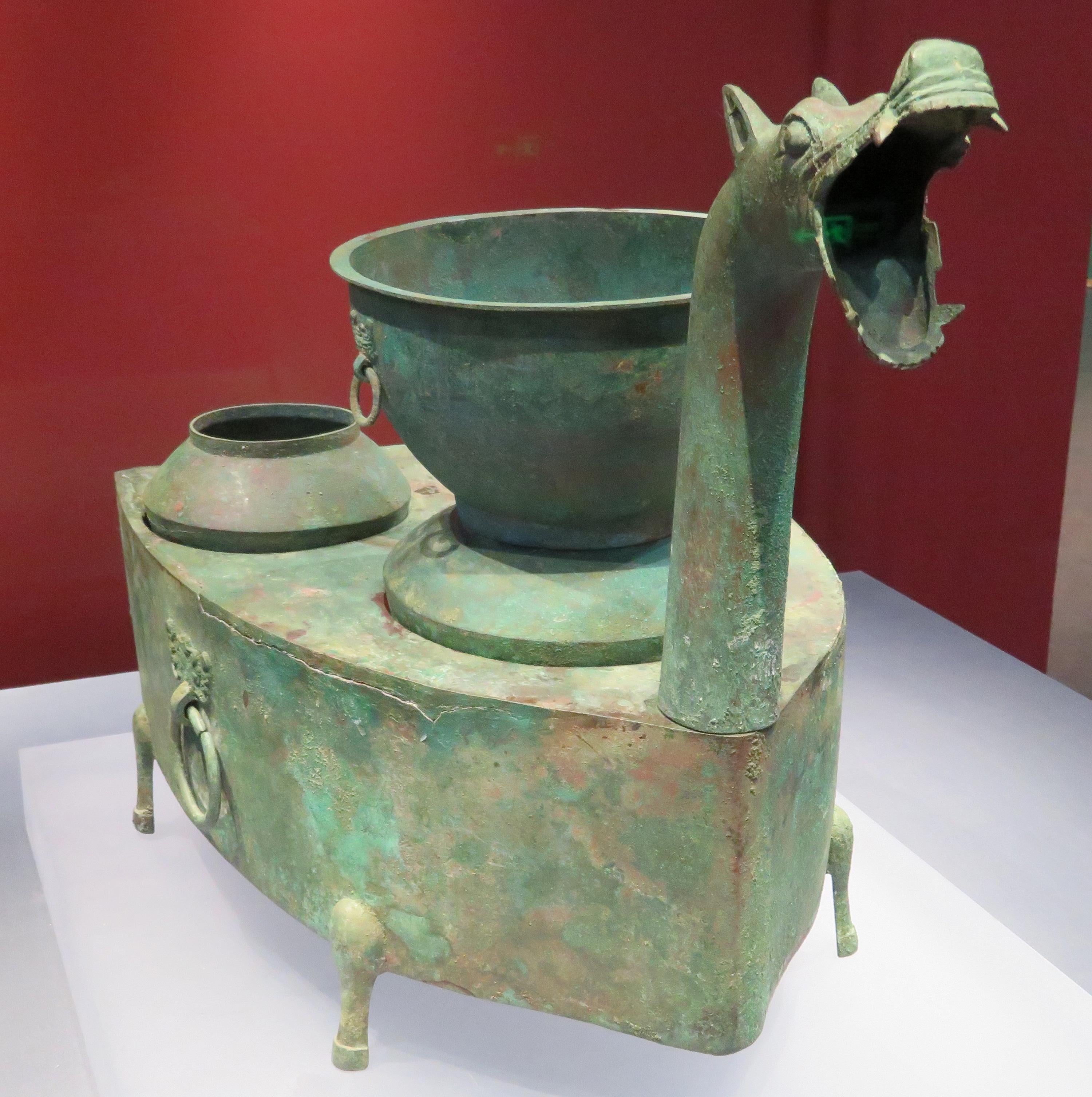 Bronze stove with dragon shaped chimney. China, Han dynasty, 206 BC–220 AD [3000×3015] by MunakataSennin