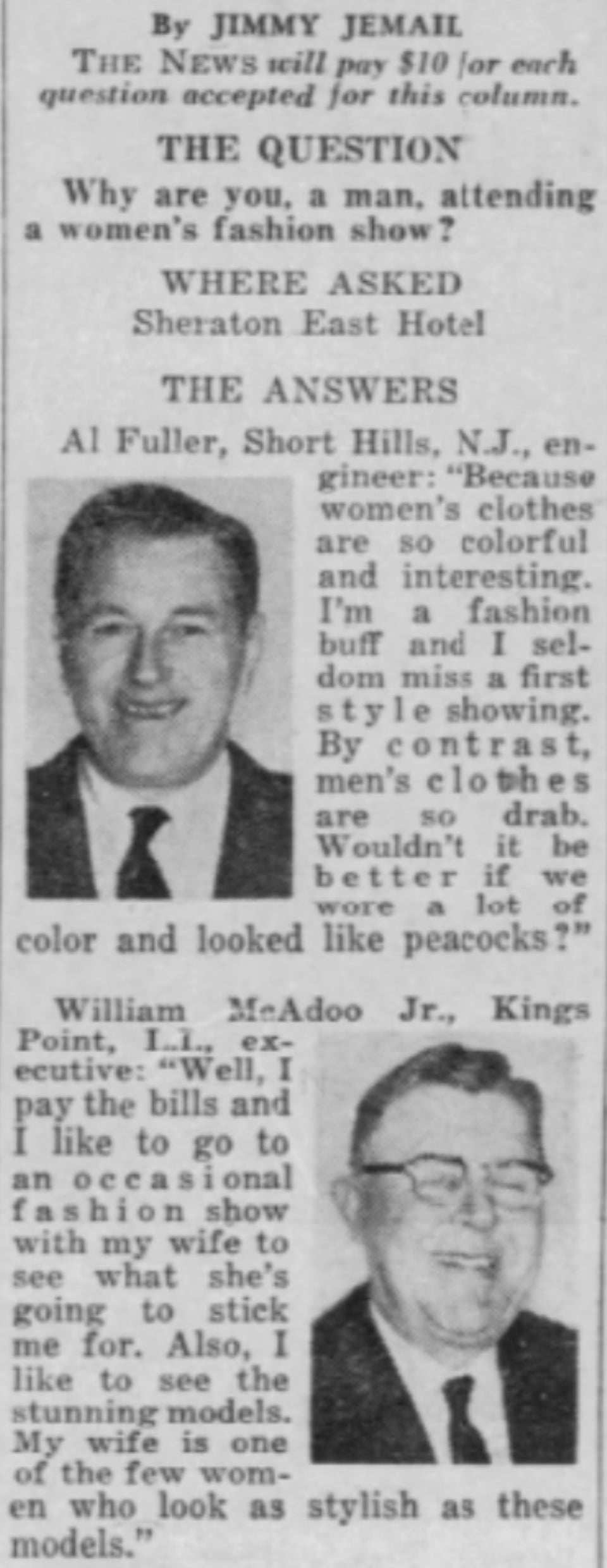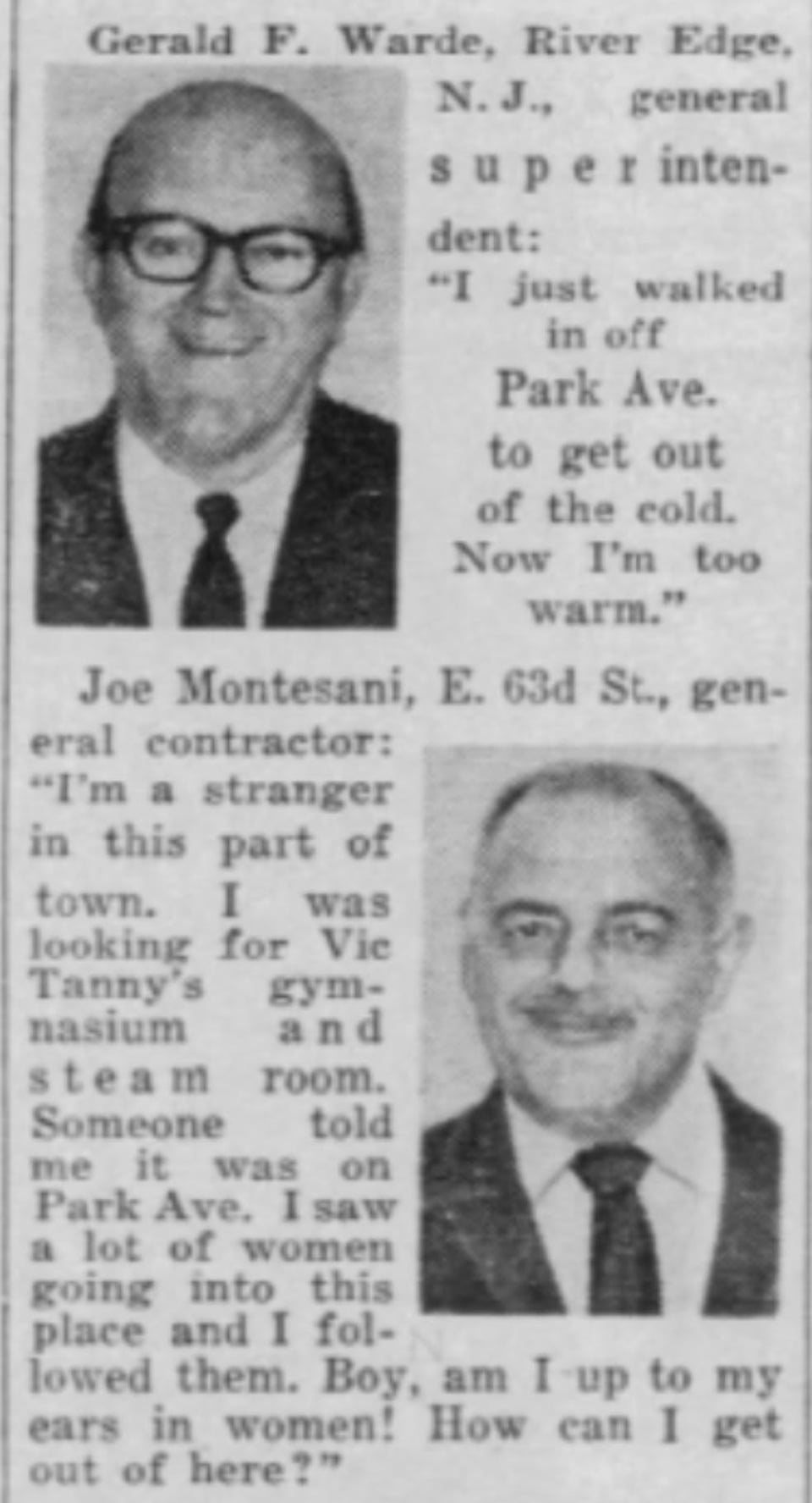 I love these posts and this one really made me chuckle, especially Gerald’s “I just walked in off Park Ave. to get out of the cold. Now I’m too warm.”(!)