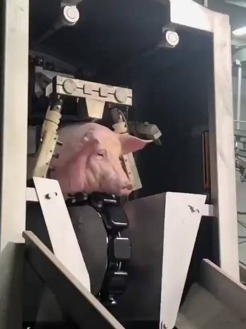Why are people downvoting this? Just about every one of you probably never gave a thought about how that pork chop or ham got to you, even though the animal was probably slaughtered in a much more cruel fashion than this.