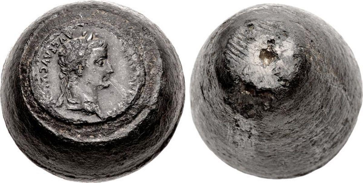 **The stamp was preserved along with the stuck silver denarius of Tiberius, still stuck in it. Official coin stamps were strictly protected to prevent counterfeits and were destroyed at the end of their life.**