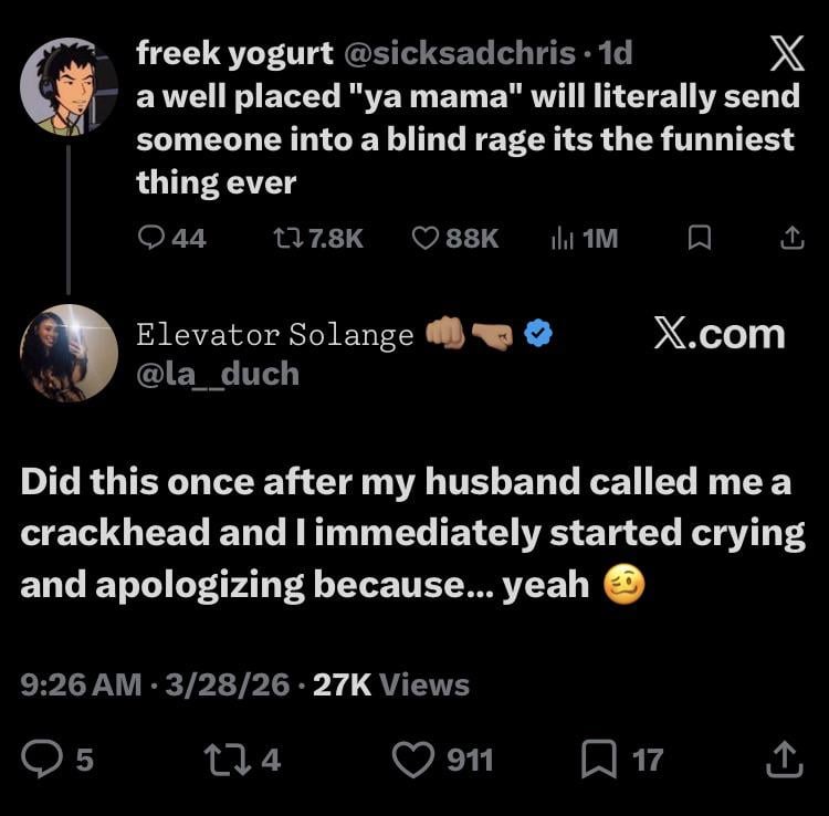 Me: Bitch, ya mama.