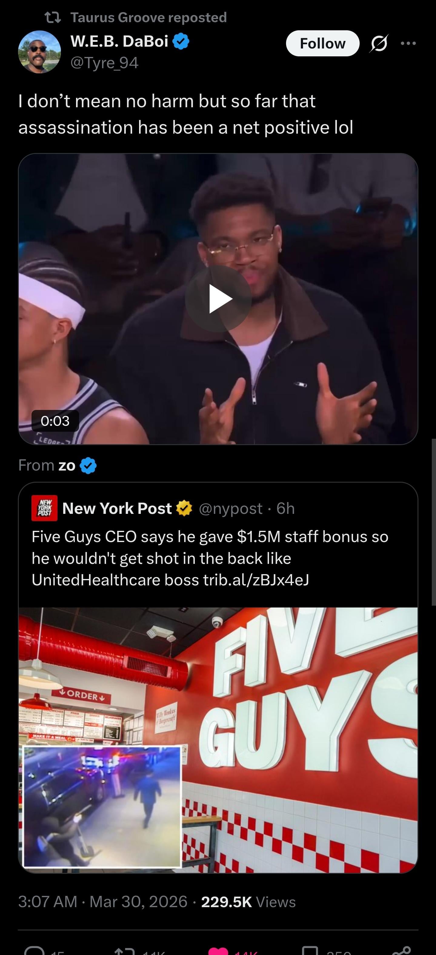Darqnyz7 on March 30, 2026 4:17 am Nobody *should* have to fear for their lives as CEO, but if you are afraid as a CEO *it’s probably your fault*