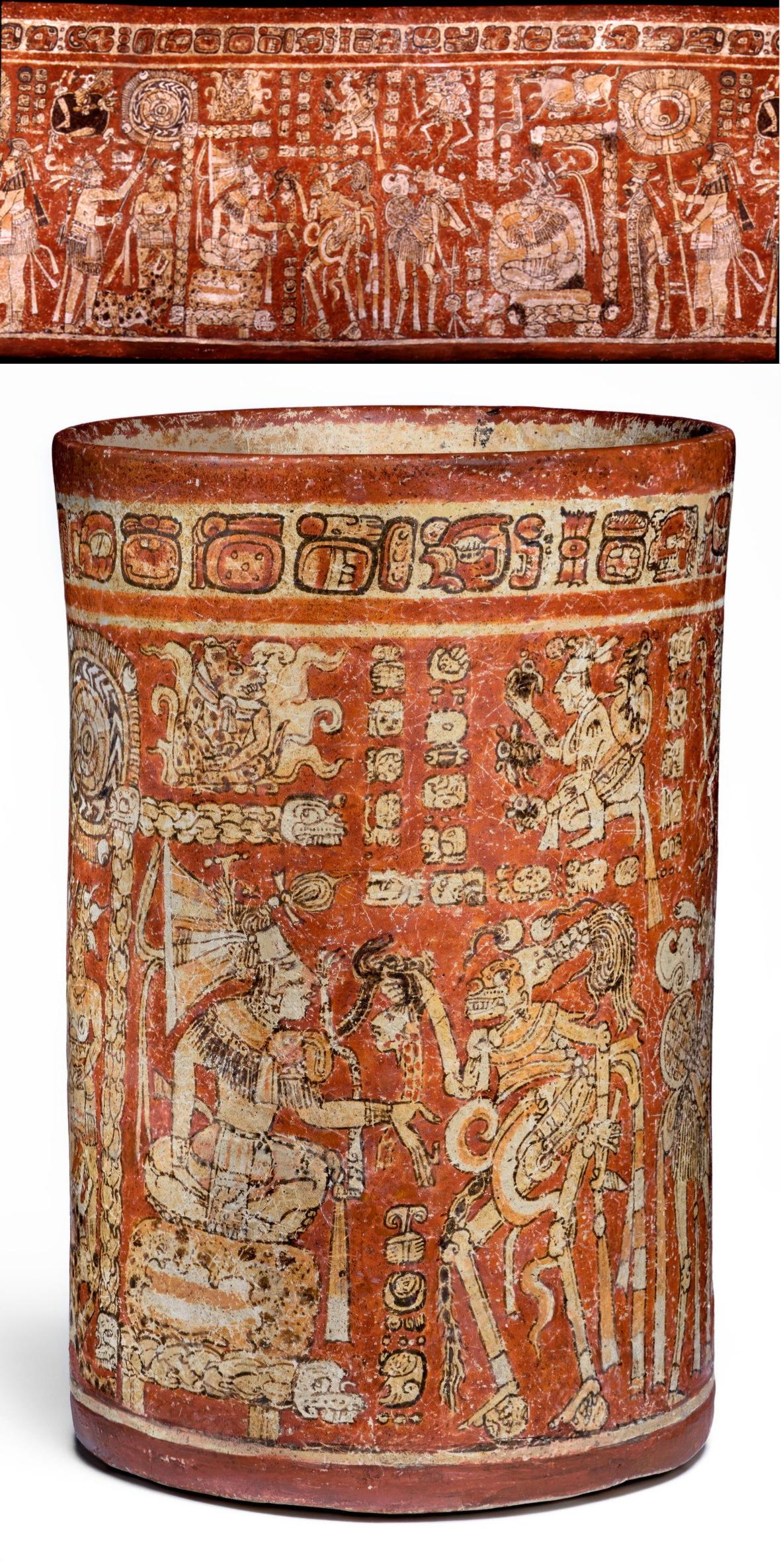 Share Facebook Twitter LinkedIn Pinterest Bluesky Threads A Maya cylinder vessel with Hero Twins and lords of death. Slip-painted ceramic, 600-900 CE [1181×2370] by Fuckoff555