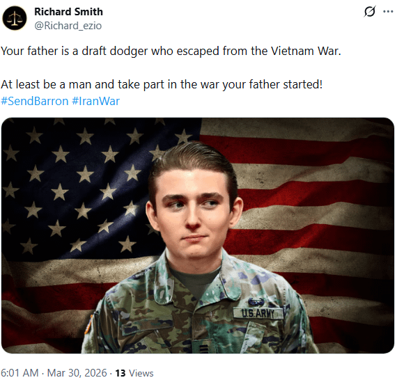 1. Prince Harry was in the military. UK intel kept him and his unit safe. Barron in the army would be a morale booster for some of our troops.