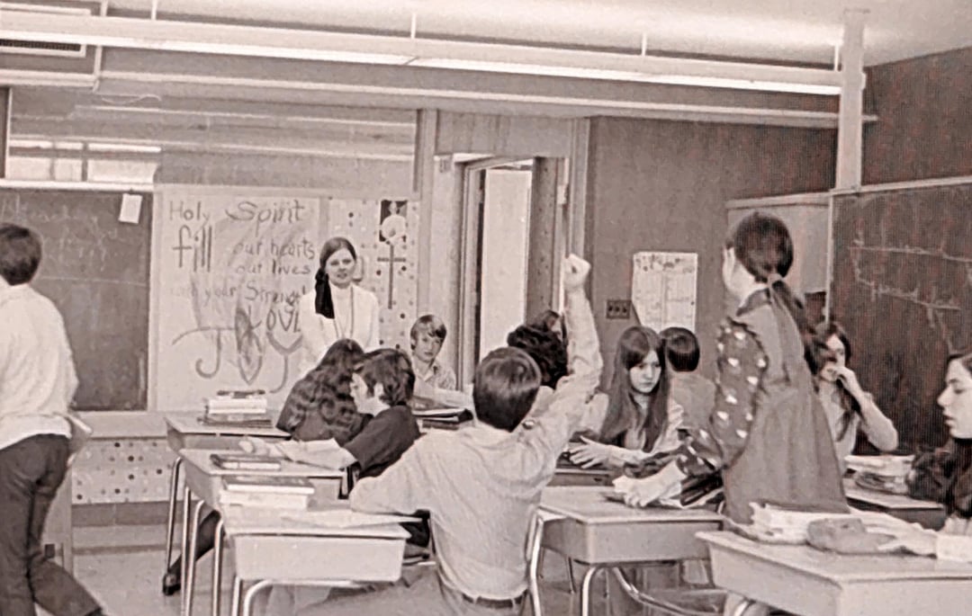Part 2 as requested, with more candid classroom shots. I have to think this was a Catholic school based on the dry erase board, though I don't know why there are no uniforms. I also agree with another commenter on the first post that these were likely taken by a skilled student photographer for Yearbook!