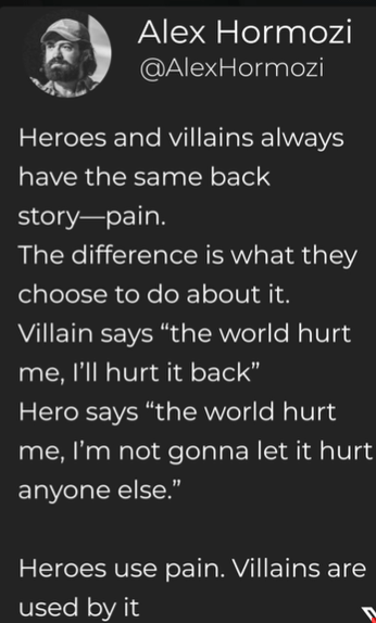 Heros dont say “the world hurt me”. Thats mentally ill talk.