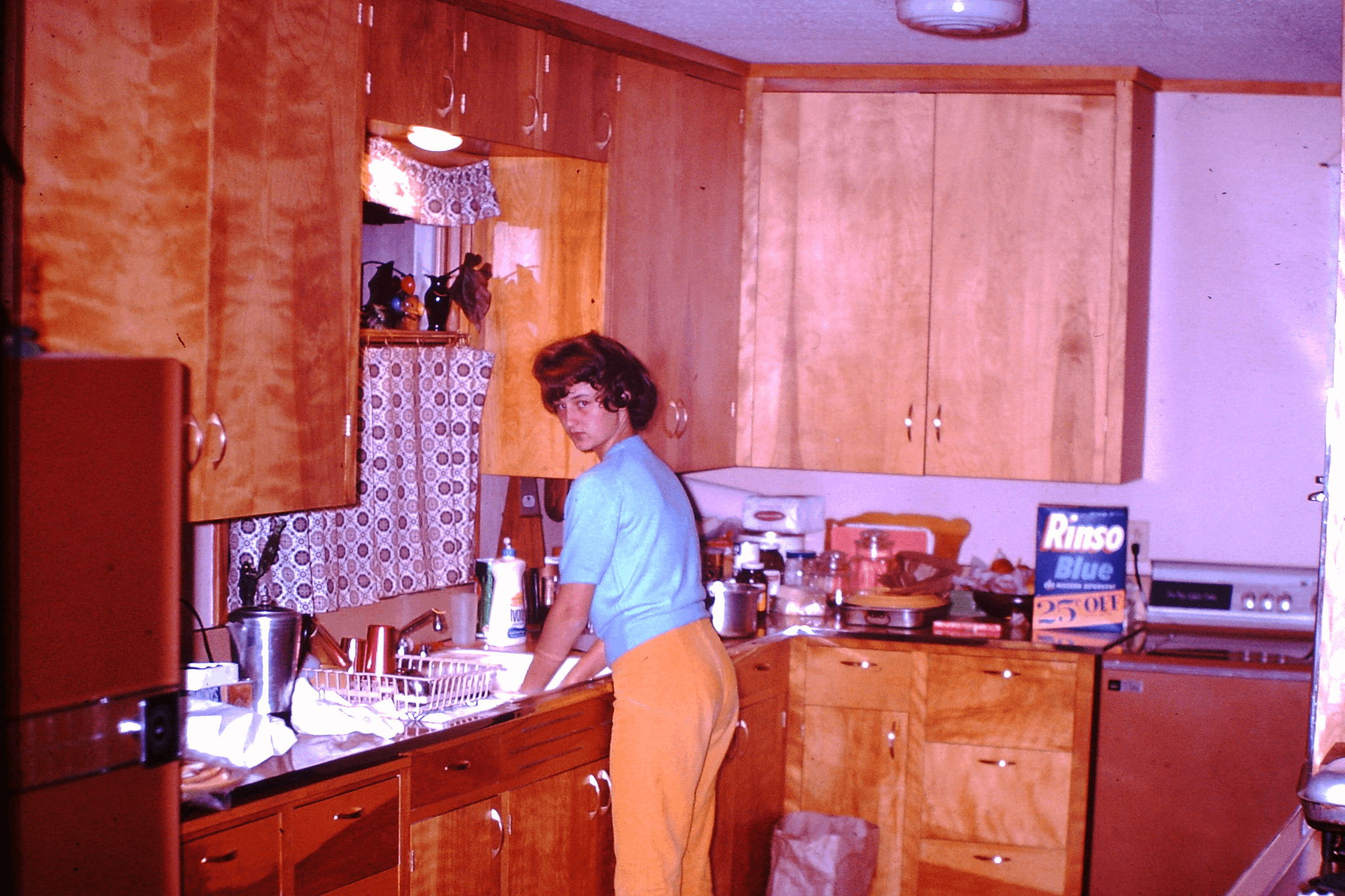 Young lady doing clean up at the kitchen, 1950s-60s