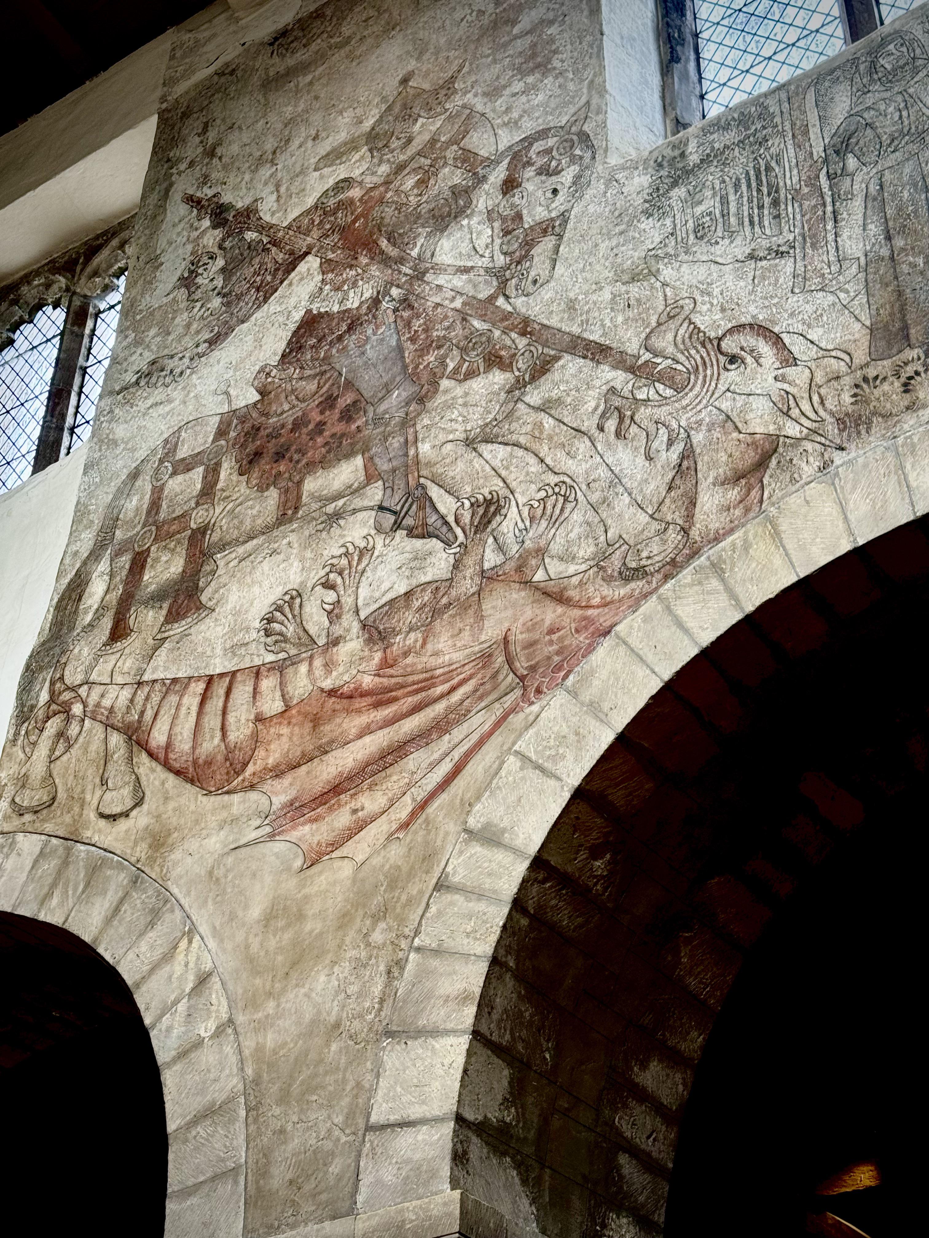 A mid to late Medieval Fresco, depicting St George slaying the dragon, found in a Saxon church in North Yorkshire, England. 1461-1483 OC [3024×4032] by arioandy