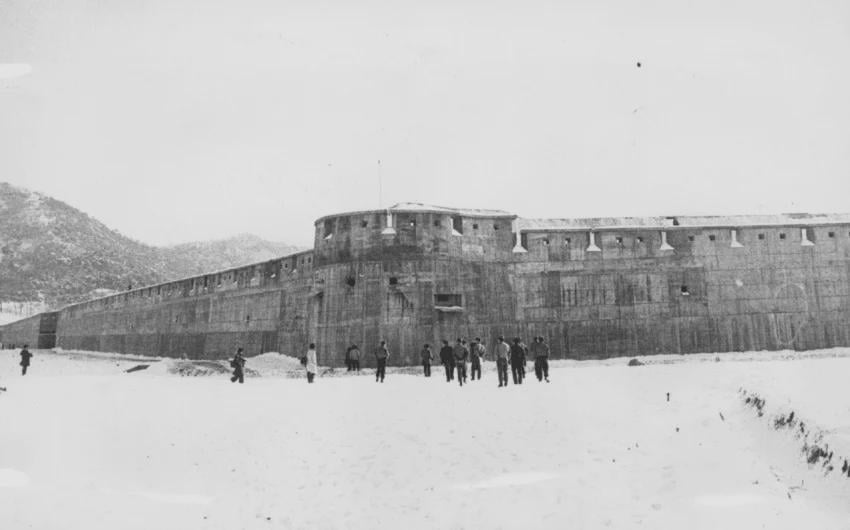 South Korean defensive wall built in the early 1980s. While it looks like a medieval castle, it was a fully functional military installation designed to serve as a major defensive line against North Korean forces.